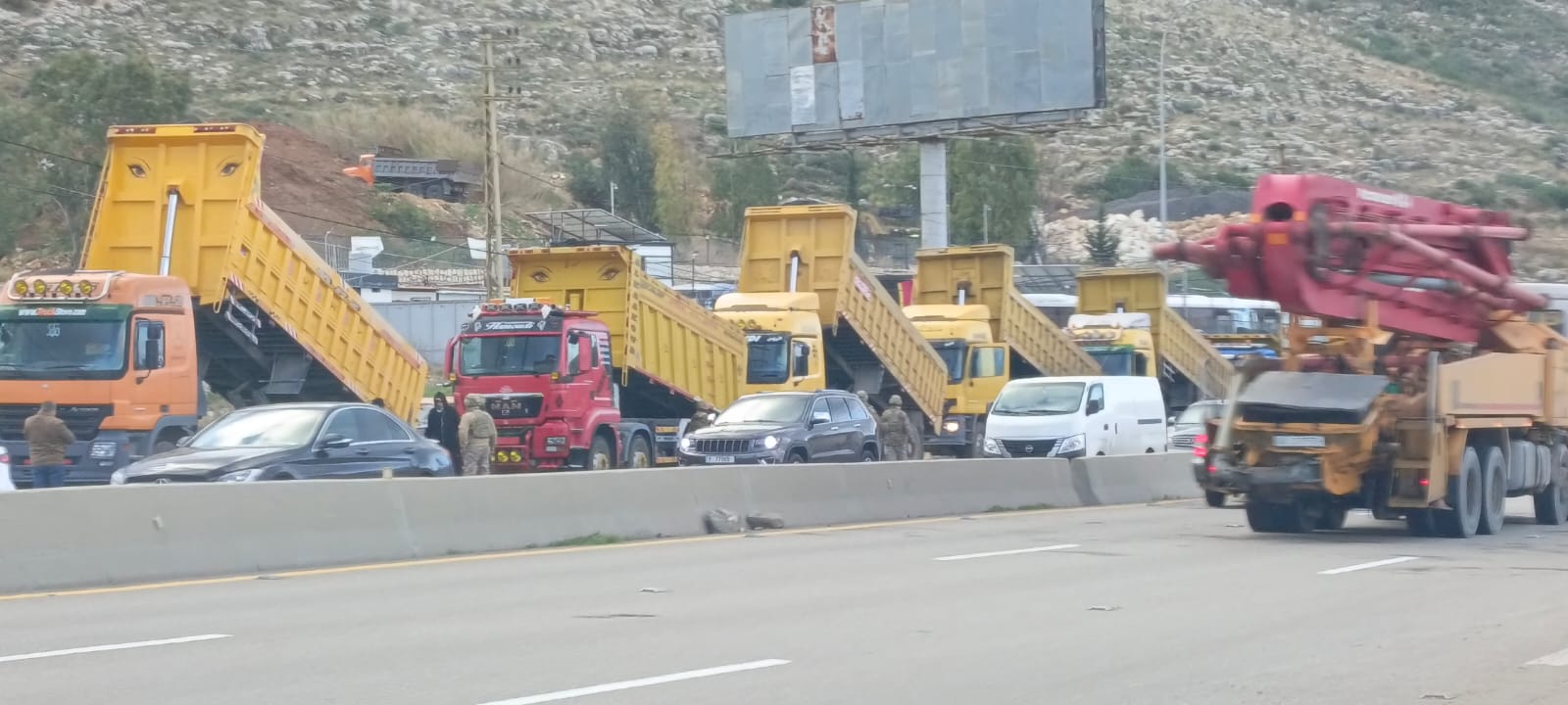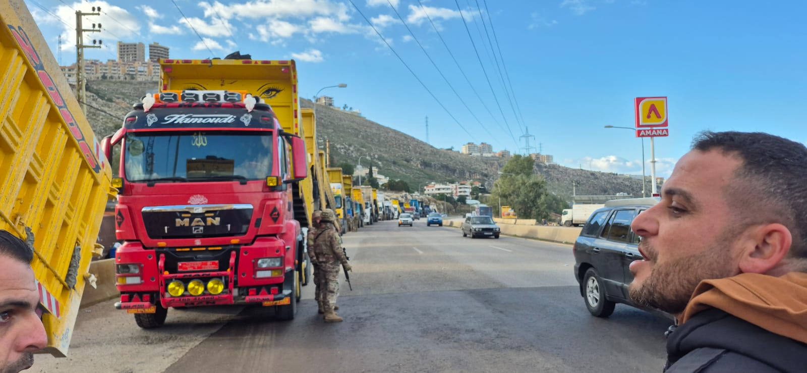 اعتصام لسائق الشاحنات على الاوتوستراد في الجية