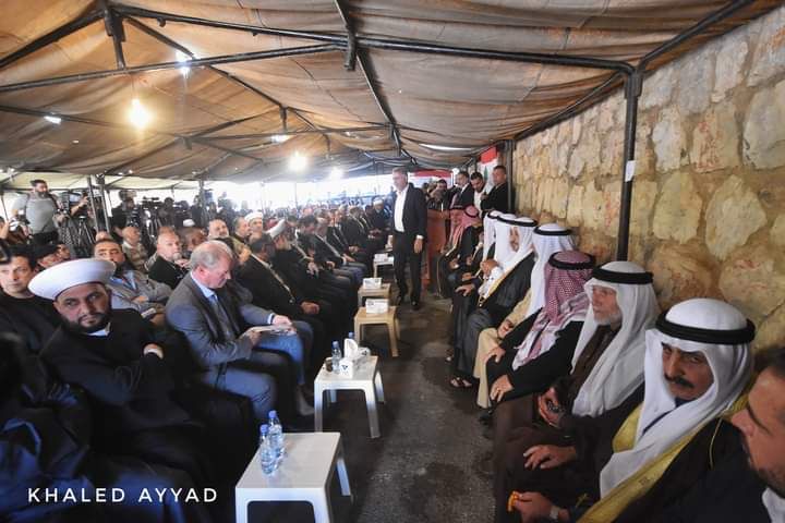 ثالثًا: في الوقت نفسه، تعلن العشائر العربية رفضها الكامل والمطلق لما ورد على لسان المدعو محمود قمّاطي، جملةً وتفصيلًا، لما يحمله من تهديد مبطن ومحاولات مكشوفة لفرض منطق الفوضى والترهيب، وهو خطاب مرفوض ومدان ولا يمثل إلا أصحابه.